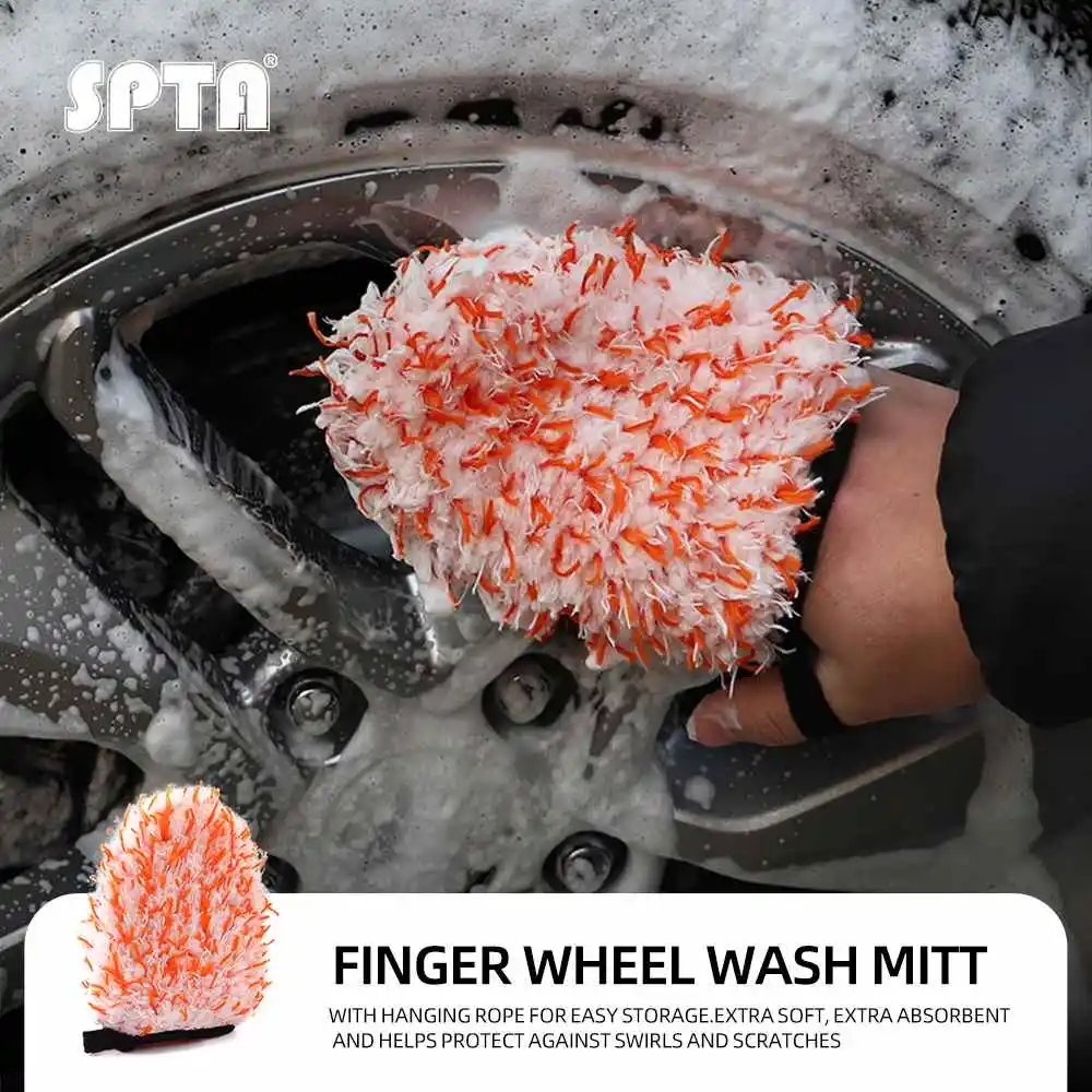 Unique Thumb Hook Design: Adopting a thumb free design, this microfiber wash mitt can help you flexibly clean the gaps in the steel ring and wheel hub.The SPTA Premium Scratch-Free Car Wash Mitt is engineered with meticulous detail to provide the safest, most effective wash for your vehicle's delicate finish.