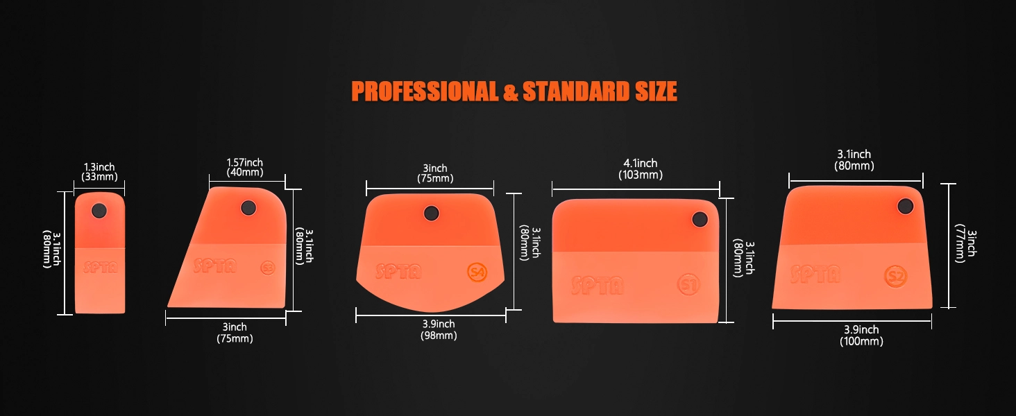 Rubber Vinyl Squeegee Kit:This window tint squeegee kit contains 5pcs soft rubber squeegee. Size: Large: 4.1*3.1 inches; X-style Large:3.9*3.0*3.1 inches; Medium:3.0*3.1*3.9 inches; X-Style Medium: 3.0*3.1*1.57inches; Mimi: 1.3*3.1 inches.