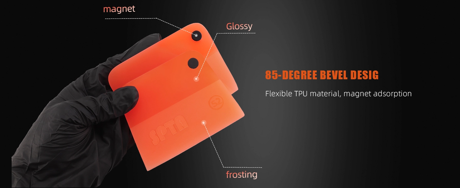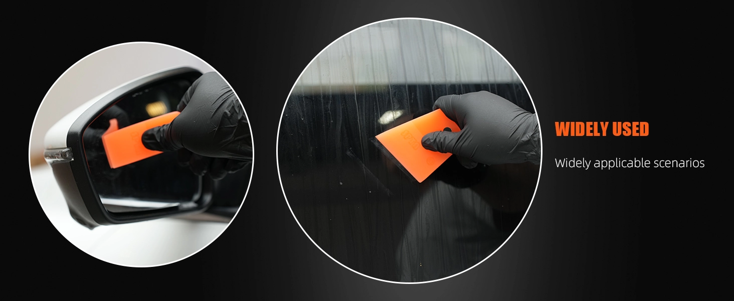 Soft Enough Rubber Squeegee : This vinyl squeegees are made of flexible TPU material, can easy bending the squeegee to adapt to the curved surface like the door handle area. Squeegee out bubbles effectively for various surface.