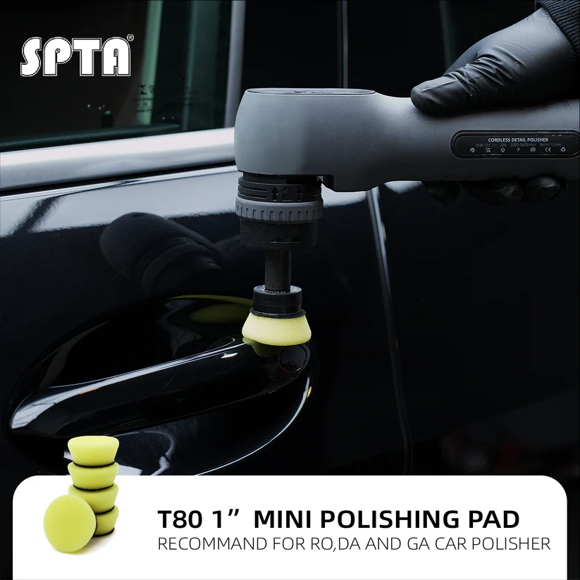 Function: T80 High-Cut Foam Pad Is Intensive Cutting Swirl-Free Polishing Pad ,It's Remove 1500/2000# Sanding Disc Marks, Swirl Marks & Heavy / Medium Oxidation,Can Work with SPTA Heavy Cut Polishing Compound and Medium Cut Polishing Compound. Ideal For RO,DA And GA Car Polisher.