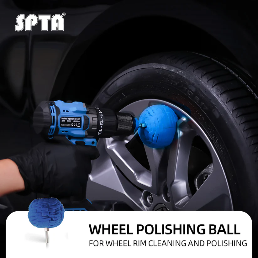 • SPTA Blue Detailing Polishing Ball,Ball Buffing Polishing Pads 3 Inch Fine Cut Sponge Car Wheel Polishers Detail Polisher Tool ,Car Hub Polishing Sponge Pad with 1/4