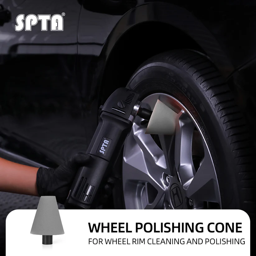 • SPTA Grey M14 Polishing Cone, Car Wheel Hub Rotary Poliher Buffing Sponge Pads , Polishing Ball,Car Buffers and Polishers Cone Pad for Drill, Attaches to Rotary Tool