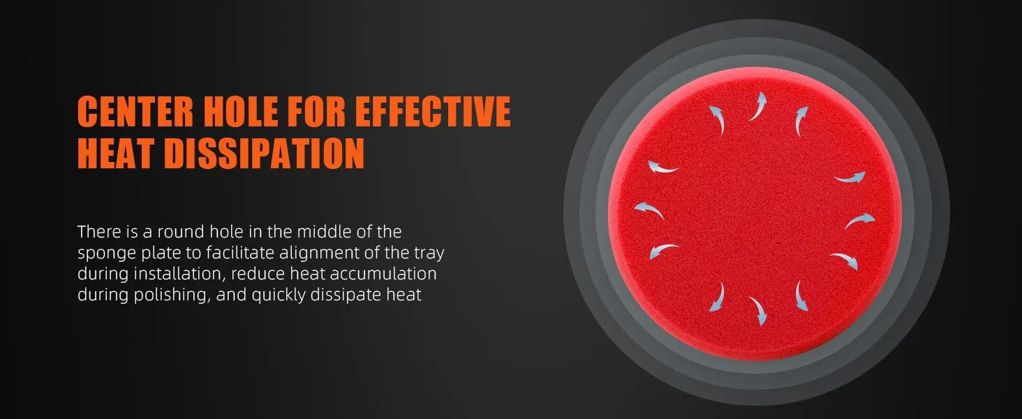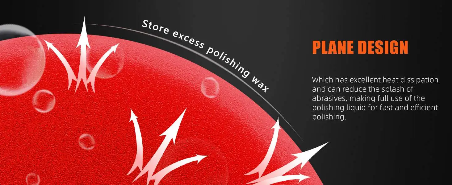 [Innovative design] The groove can store excess polishing paste and abrasives; at the same time, it speeds up the air circulation between the paint and the polishing pad and avoids the accumulation of heat;