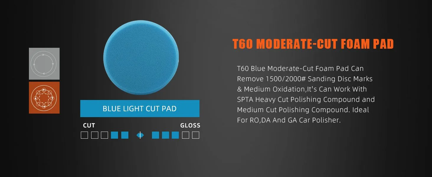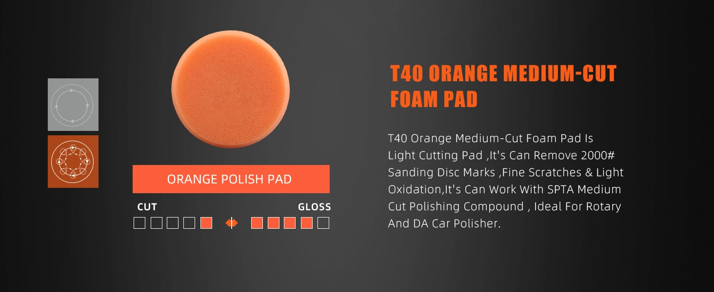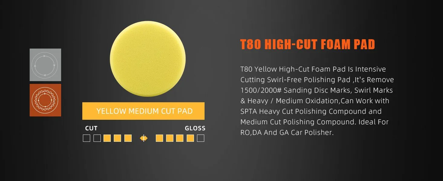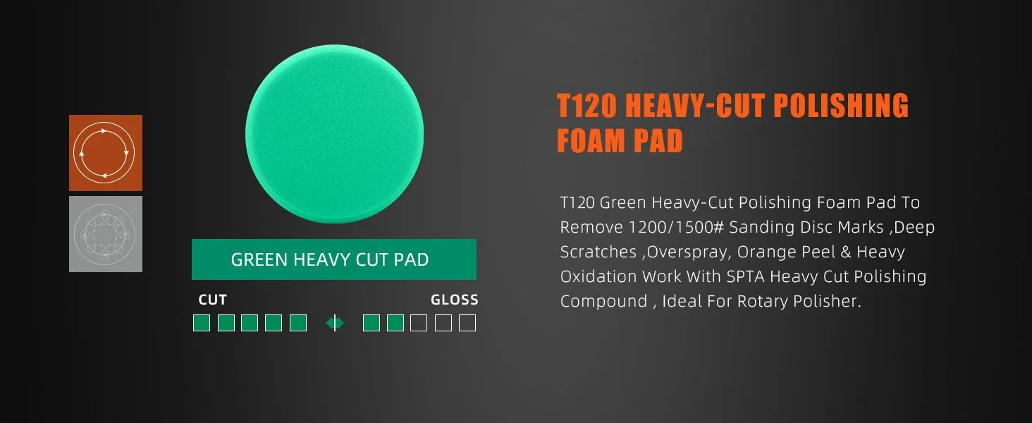 [Function]  T120 Heavy-Cut Polishing Foam Pad To Remove 1200/1500# Sanding Disc Marks ,Deep Scratches ,Overspray, Orange Peel & Heavy Oxidation Work With SPTA Heavy Cut Polishing Compound , Ideal For Rotary Polisher