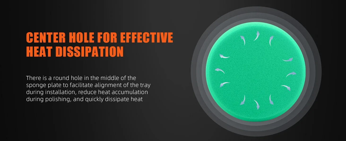 [Innovative design] The groove can store excess polishing paste and abrasives; at the same time, it speeds up the air circulation between the paint and the polishing pad and avoids the accumulation of heat;