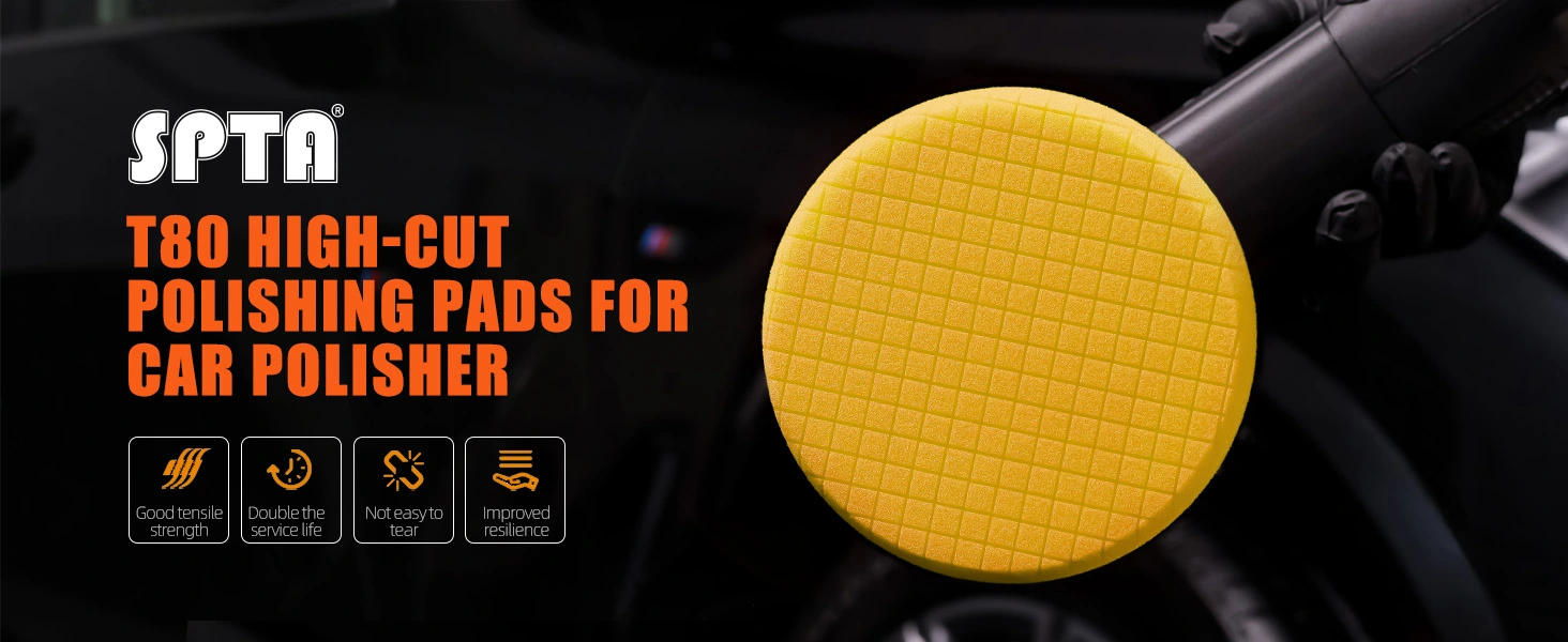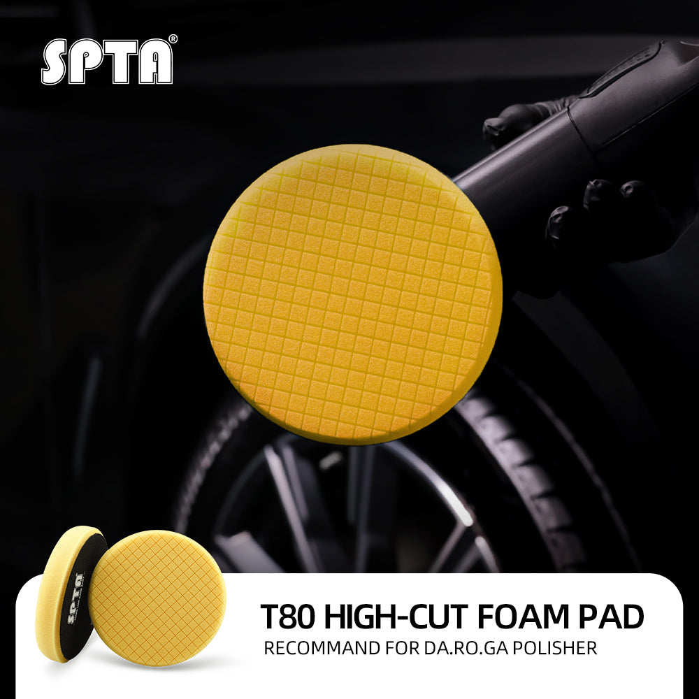 [Function]  T80 High-Cut Foam Pad Is Intensive Cutting Swirl-Free Polishing Pad ,It's Remove 1500/2000# Sanding Disc Marks, Swirl Marks & Heavy / Medium Oxidation,Can Work with SPTA Heavy Cut Polishing Compound and Medium Cut Polishing Compound. Ideal For RO,DA And GA Car Polisher