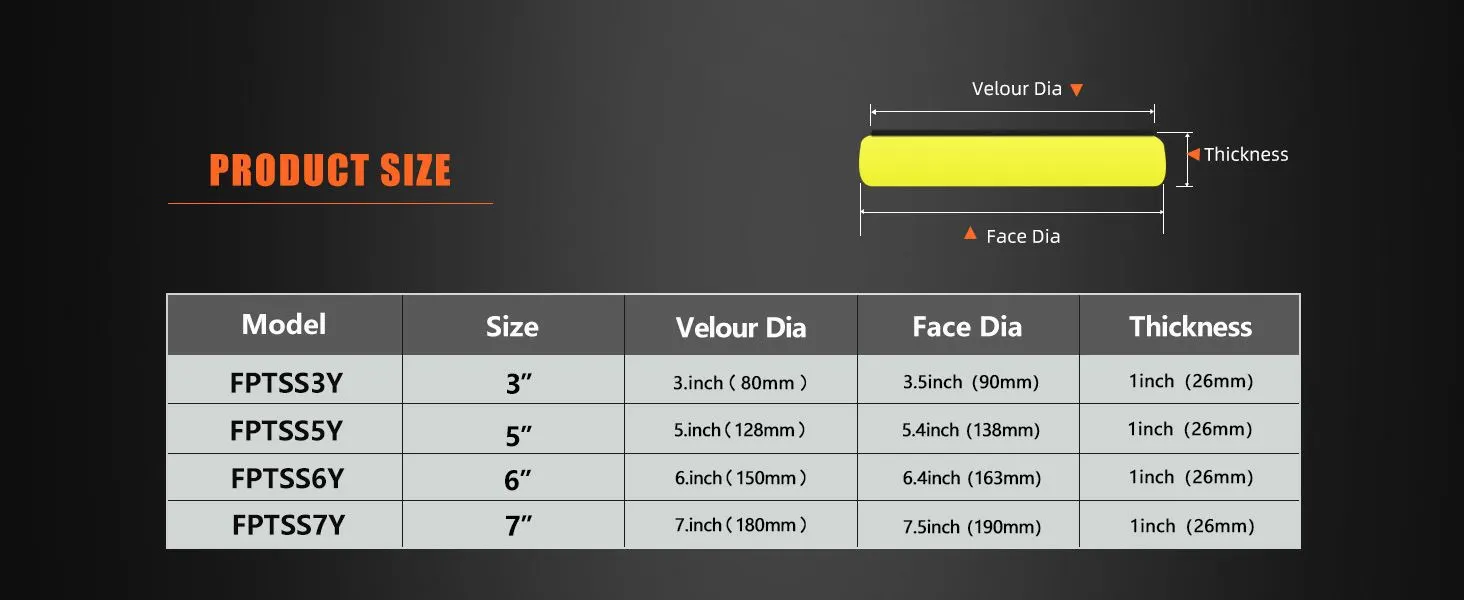 [Standard size] The diameter of the sponge is 3 inches/5 inches/6 inches (Select The Size You Want), and the bottom Velcro fasteners can prevent scratching and scorching of the sponge surface during the polishing process, reducing the wear and fasteners between the sponges, and improving product reliability.