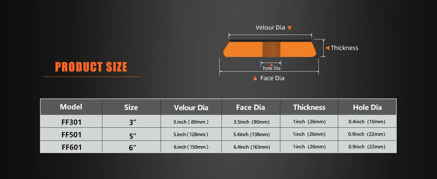 [Standard size] The diameter of the sponge is 3 inches/5 inches/6 inches (Select The Size You Want), and the bottom Velcro fasteners can prevent scratching and scorching of the sponge surface during the polishing process, reducing the wear and fasteners between the sponges, and improving product reliability.