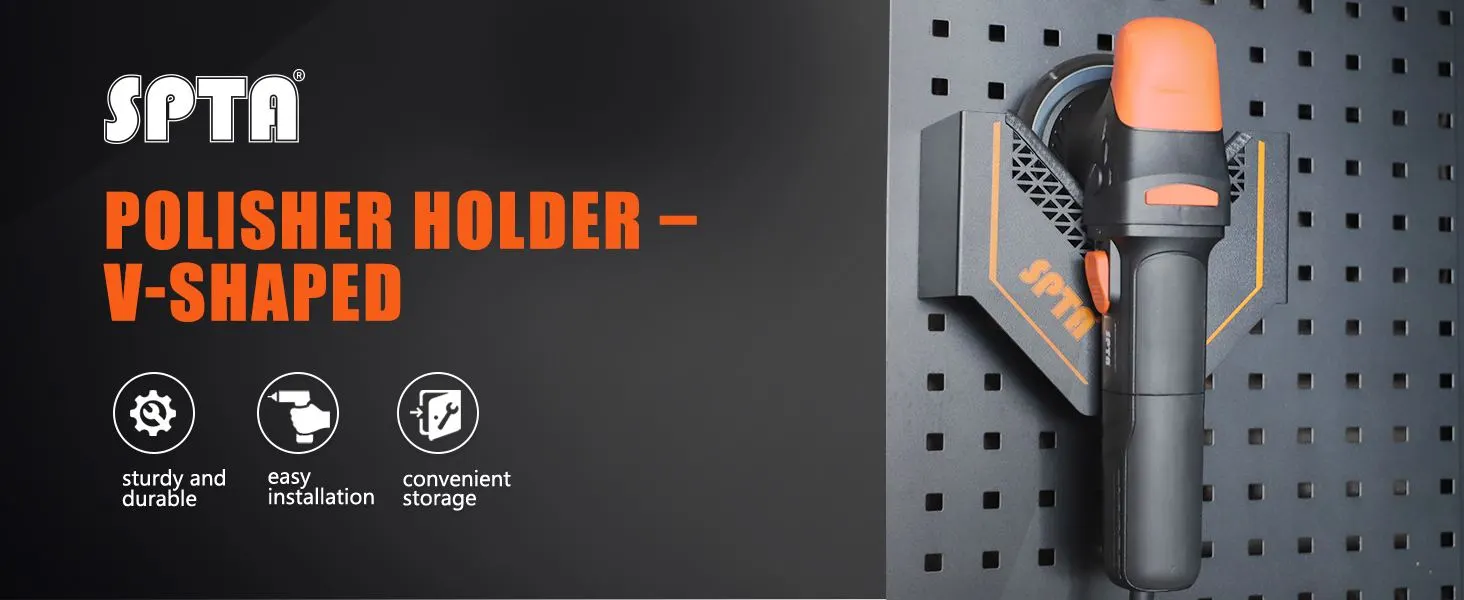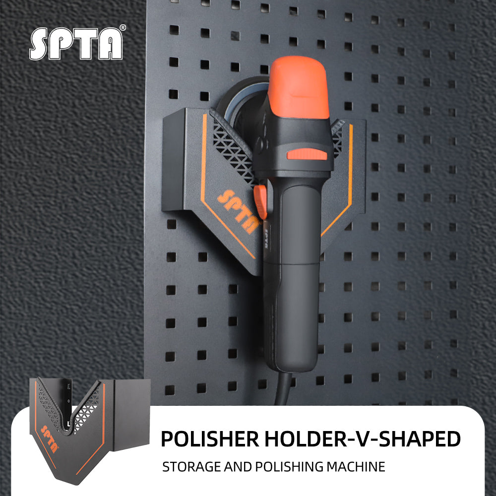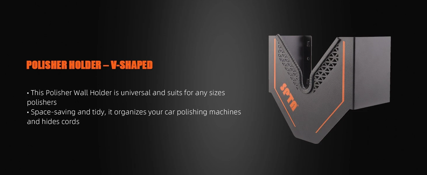 SPTA Polisher Holder V Shape,V-Shape Machine Polisher Wall Holder,Organizer, Angle Grinder Holder Tool Wall mount Bracket For Dual Action & Rotary Polishers for Mobile Detailing, Detailing Storage