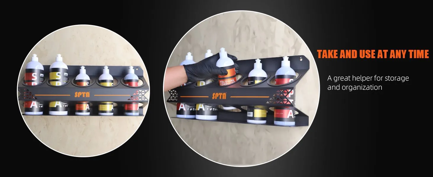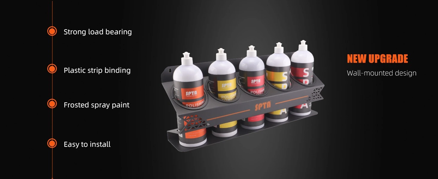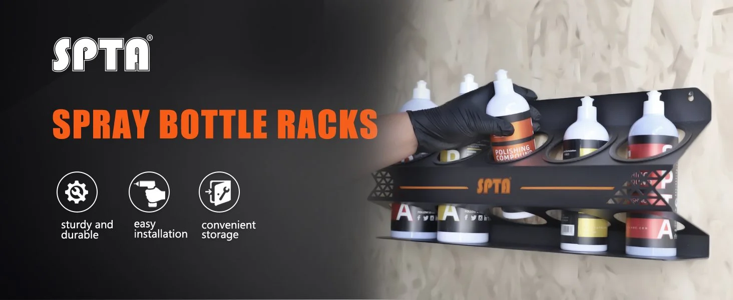 • SPTA Spray Bottle Racks ,Spray Can Holder Rack Organizer, 5 Can Spray Bottle Holder Heavy-Duty Steel Wall Mounted for Garage and Workspace