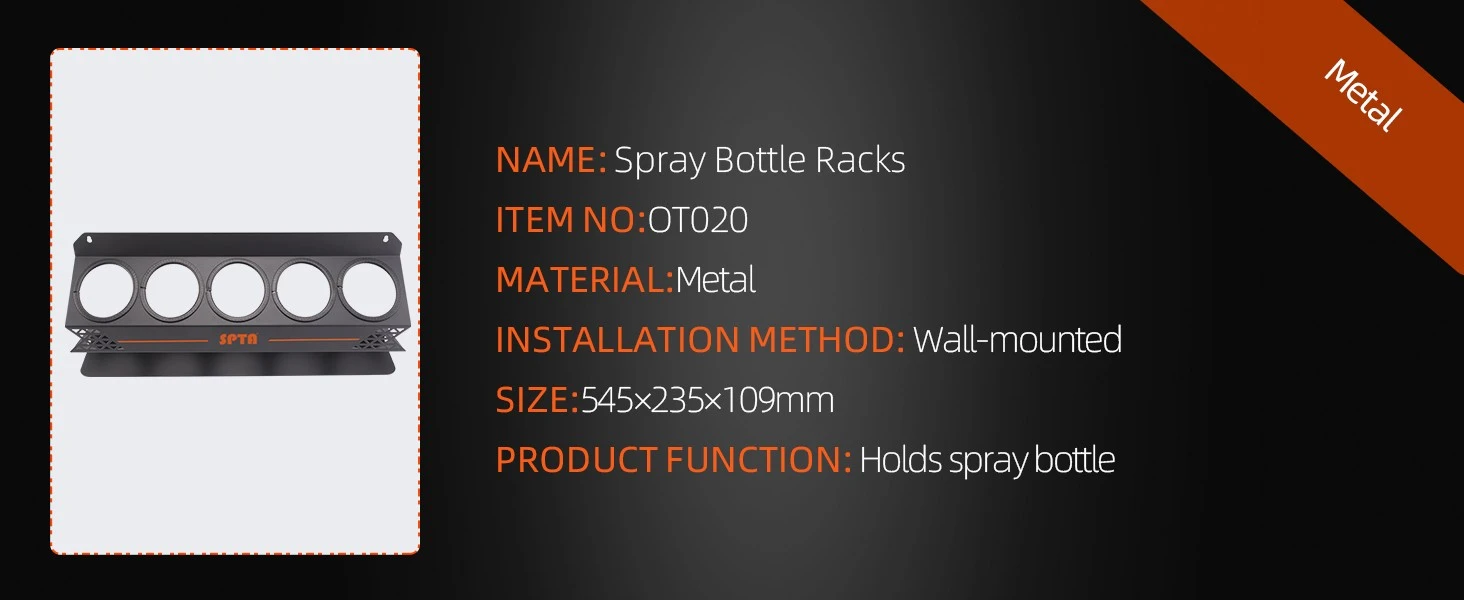 Quality Material:Made of heavy duty steel with powder coated finish for lasting durability, it won't flex or sag at all. The spray bottle rack comes with no assembly and easy to mount.
