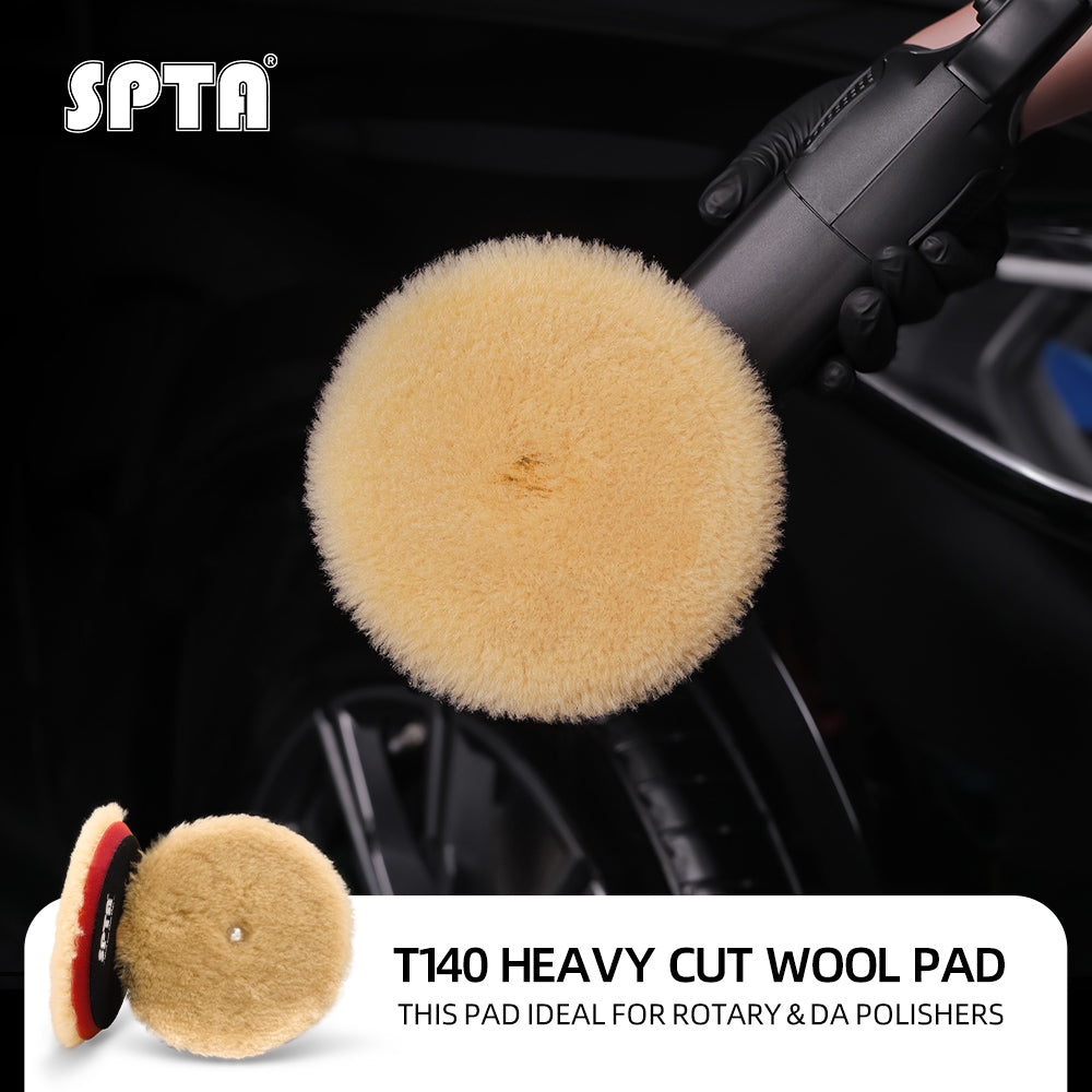 • SPTA 3 inch to 6 inch Wool Polishing Pad, T140 Yellow Heavy Cut Wool Pad to Remove 1200#/1500# Sanding Disc Marks, Deep Scratches, Orange Peel and Heavy Oxidation for Automotive, Car, RV, Motorbike & Boat