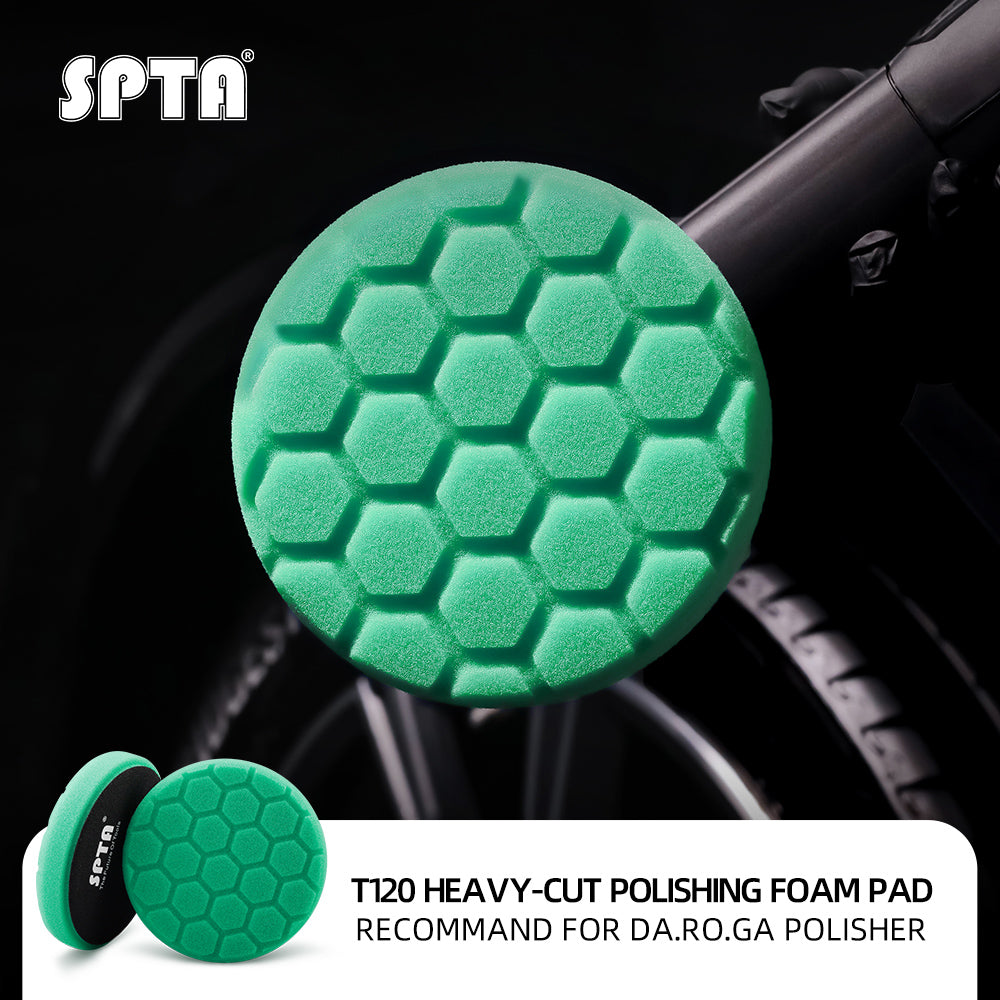[Function]  T120 Heavy-Cut Polishing Foam Pad To Remove 1200/1500# Sanding Disc Marks ,Deep Scratches ,Overspray, Orange Peel & Heavy Oxidation Work With SPTA Heavy Cut Polishing Compound , Ideal For Rotary Polisher