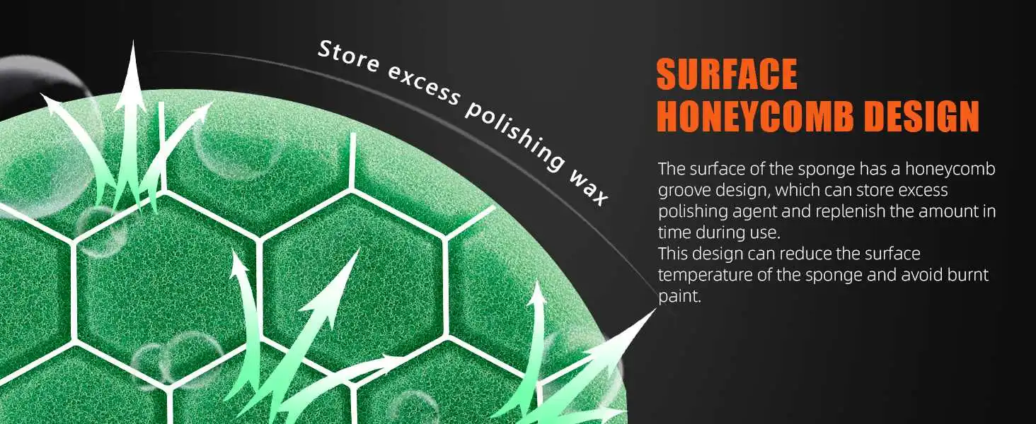[Innovative design] The groove can store excess polishing paste and abrasives; at the same time, it speeds up the air circulation between the paint and the polishing pad and avoids the accumulation of heat;