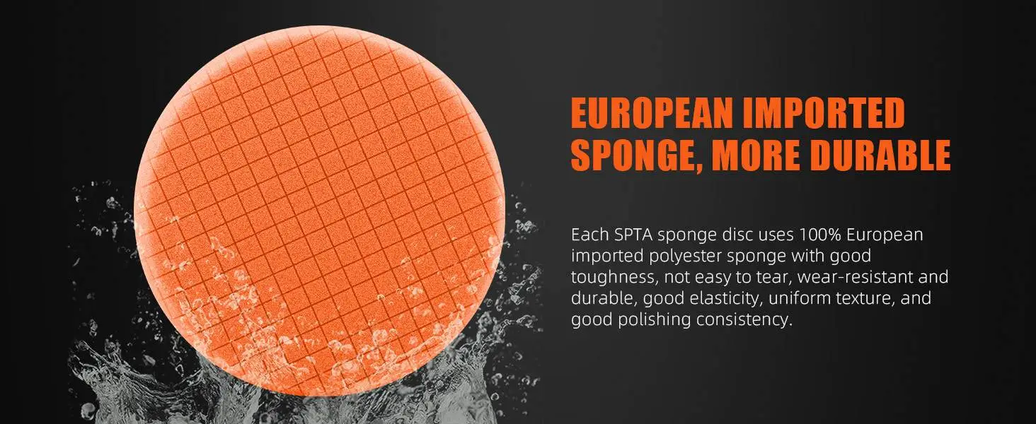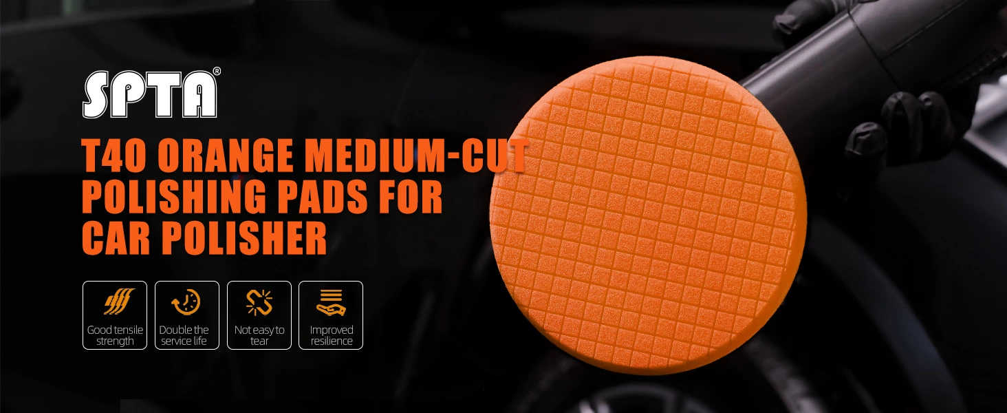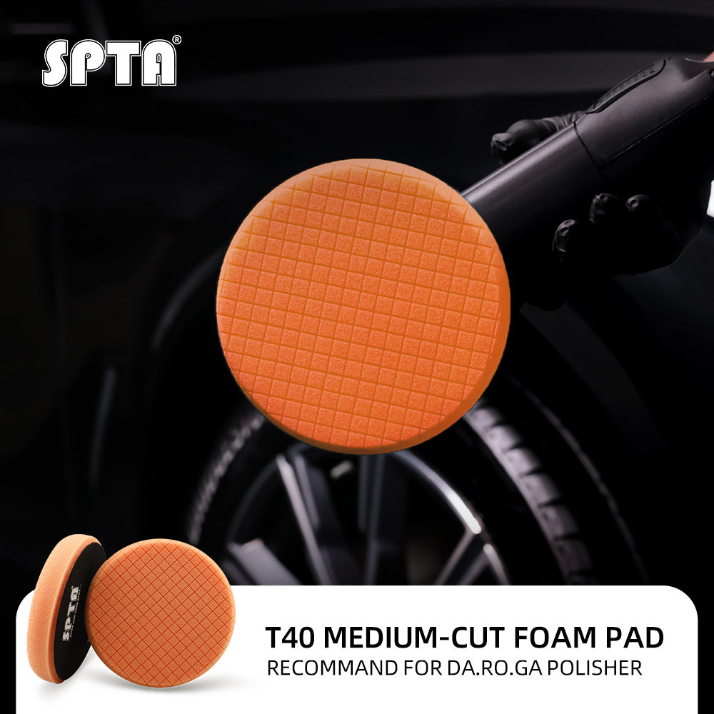 [Function] T40 Orange Medium-Cut Foam Pad Is Light Cutting Pad ,It's Can Remove 2000# Sanding Disc Marks ,Fine Scratches & Light Oxidation,It's Can Work With SPTA Medium Cut Polishing Compound , Ideal For Rotary And DA Car Polisher.