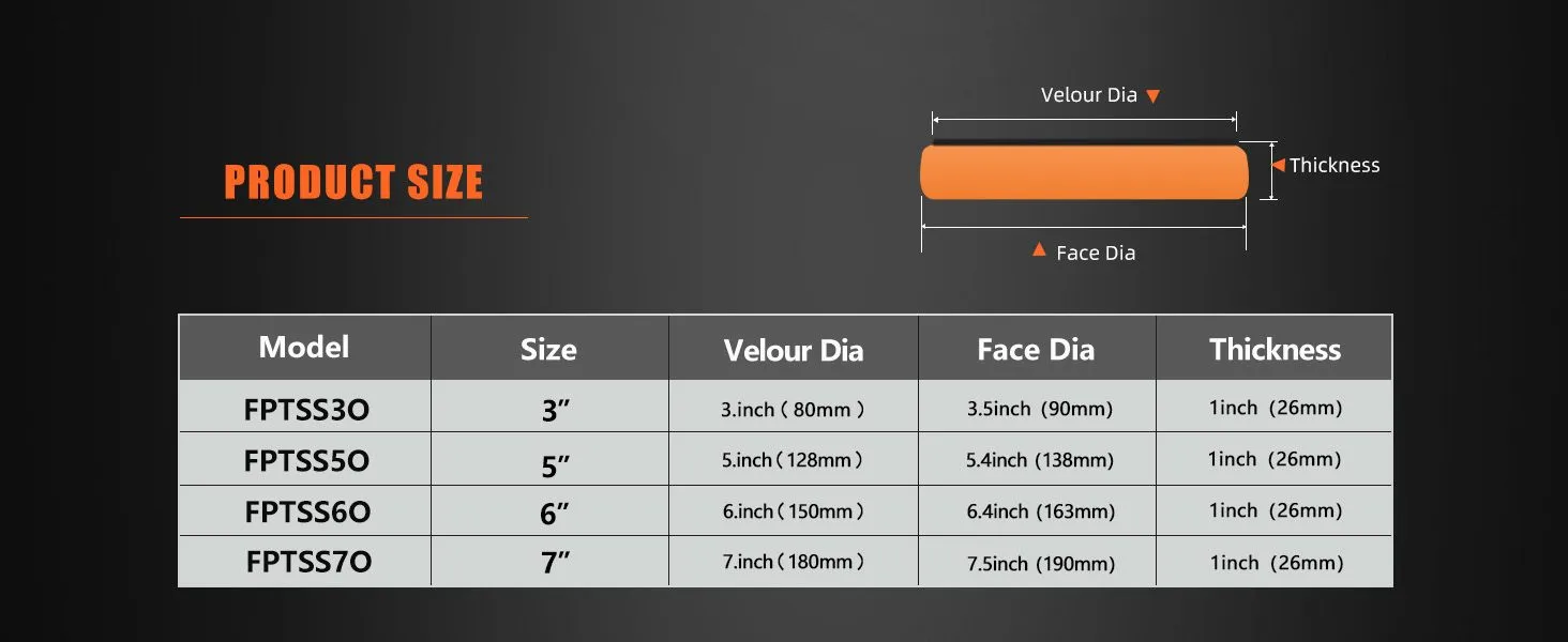 [Standard size] The diameter of the sponge is 3 inches/5 inches/6 inches (Select The Size You Want), and the bottom Velcro fasteners can prevent scratching and scorching of the sponge surface during the polishing process, reducing the wear and fasteners between the sponges, and improving product reliability.