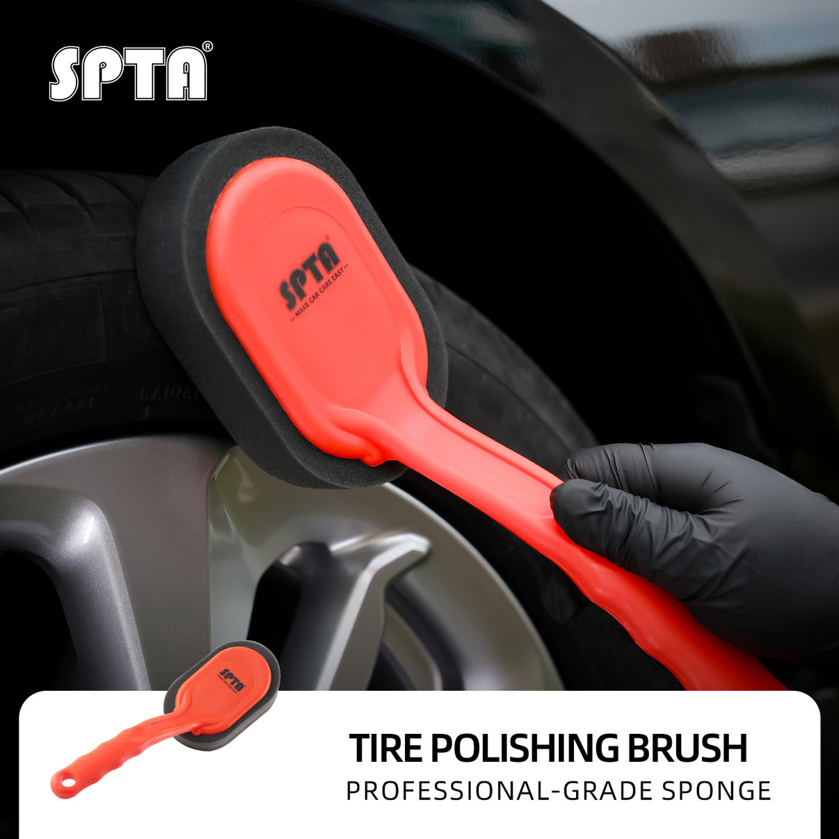 • SPTA Car Wheel and Tire Waxing Applicator Coating Sponge Brush Black and Red Waxing Sponge Brush Replaceable Cleaning Hand Pad