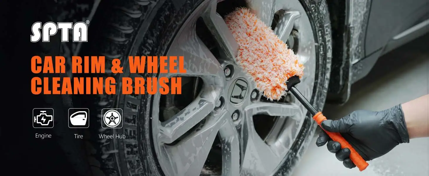 • SPTA DF043 Straight handle Car Rim & Wheel Cleaning Brush Made With Microfiber Plastic Handle For Cars&Trucks&SUV