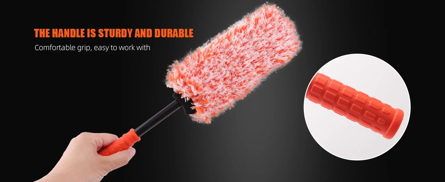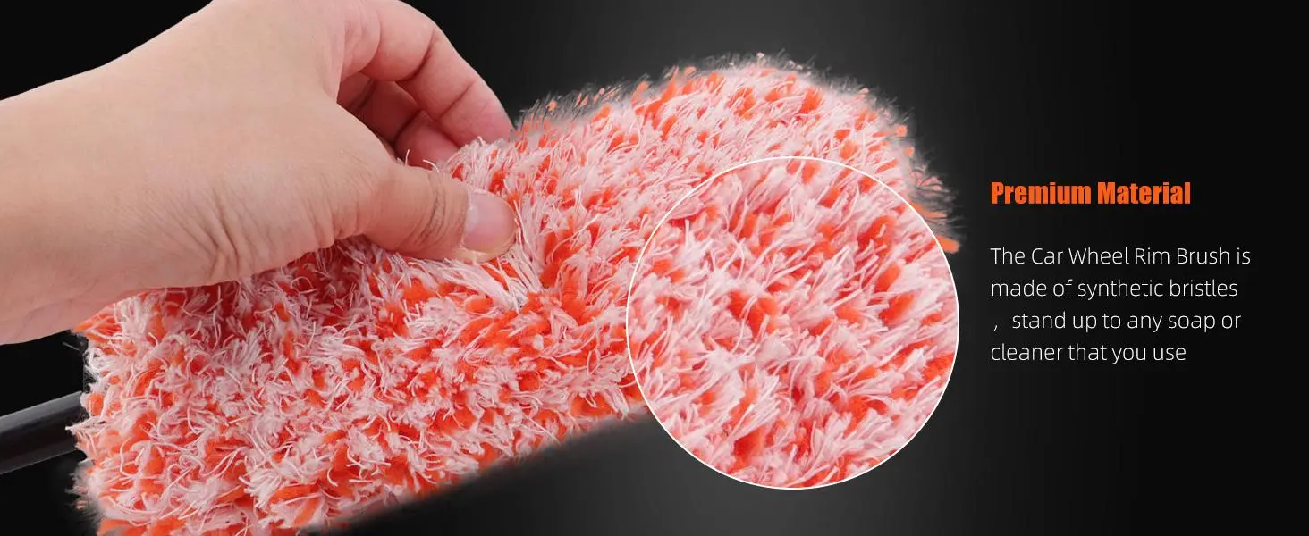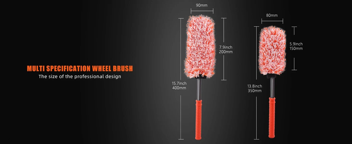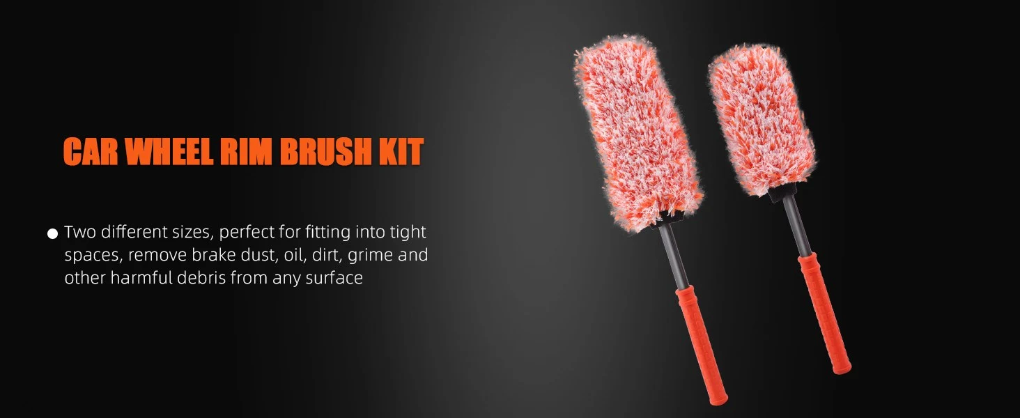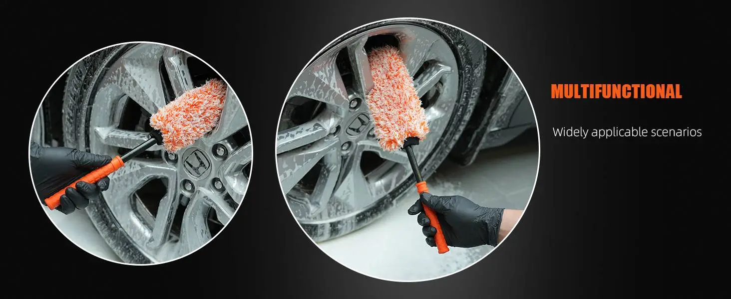 PREMIUM QUALITY MATERIAL: The car wheel brush set is carefully made of soft microfiber material, which is soft, delicate and durable, does not contain metal and will not scratch the surface of the wheels, you can rest assured to use it!